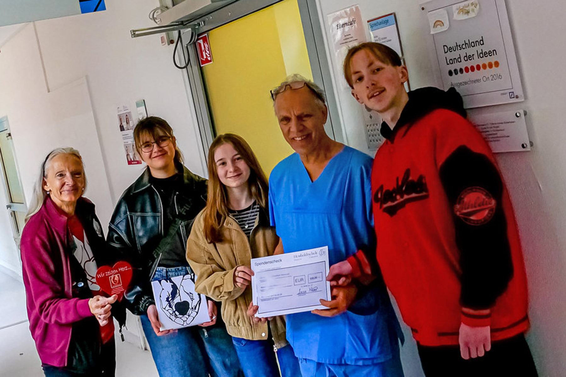 Drei Schülervertreter der Humboldtschule aus Hannover-Linden haben vor dem Kinderkrankenhaus der Med…