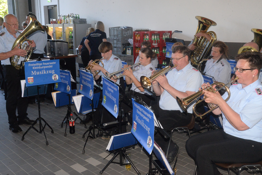 Zum Schluss der Feier überreichte Florian Leisenberg noch kleine Geschenke an Ortrud Wendt sowie an Michaela Greite, Andrea Strick und Markus Pill aus der Stadtverwaltung für deren gute Zusammenarbeit mit allen Beteiligten beim Bau. Ortrud Wendt betonte, dass das alles absolute Teamarbeit gewesen sei. Musikalisch begleitet wurde die Einweihungsfeier vom Musikzug der Freiwilligen Feuerwehr Kleinburgwedel.