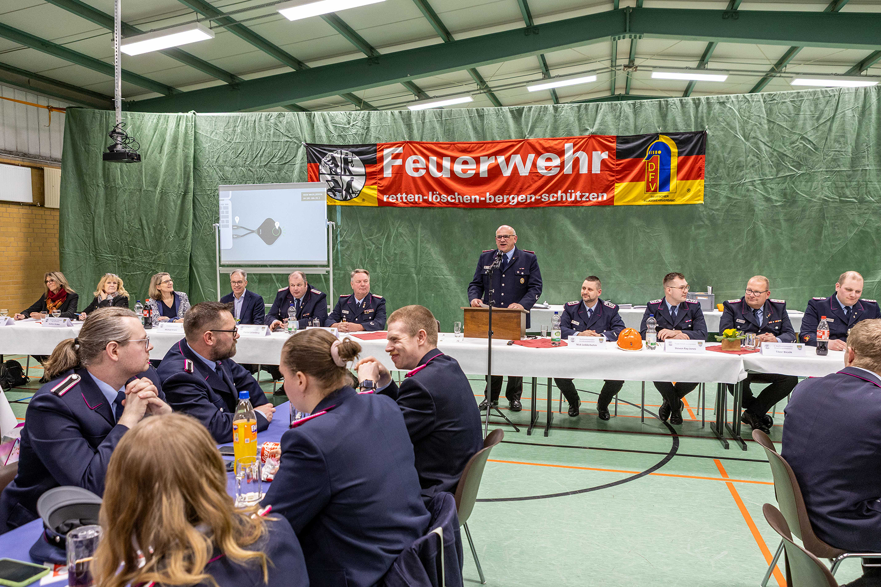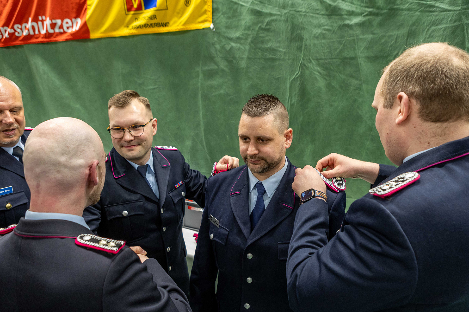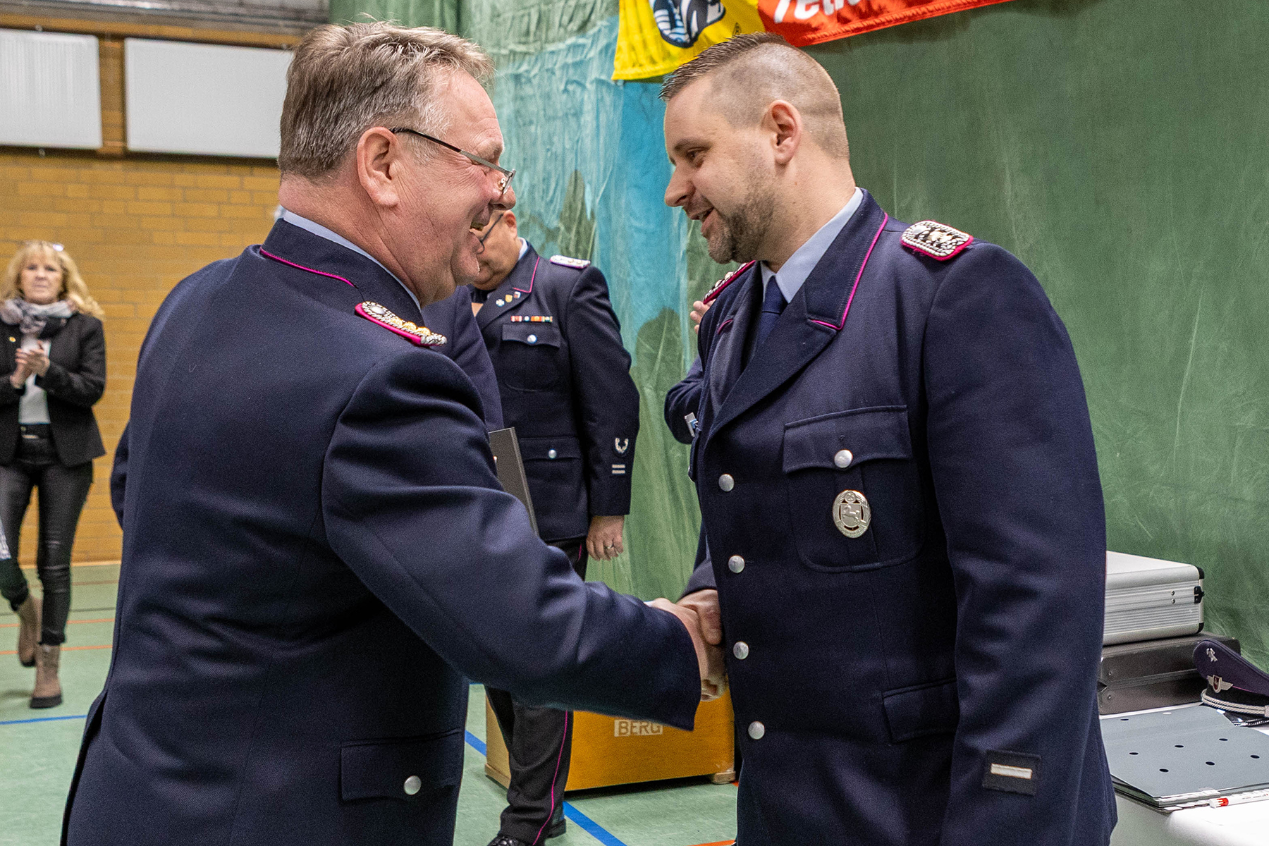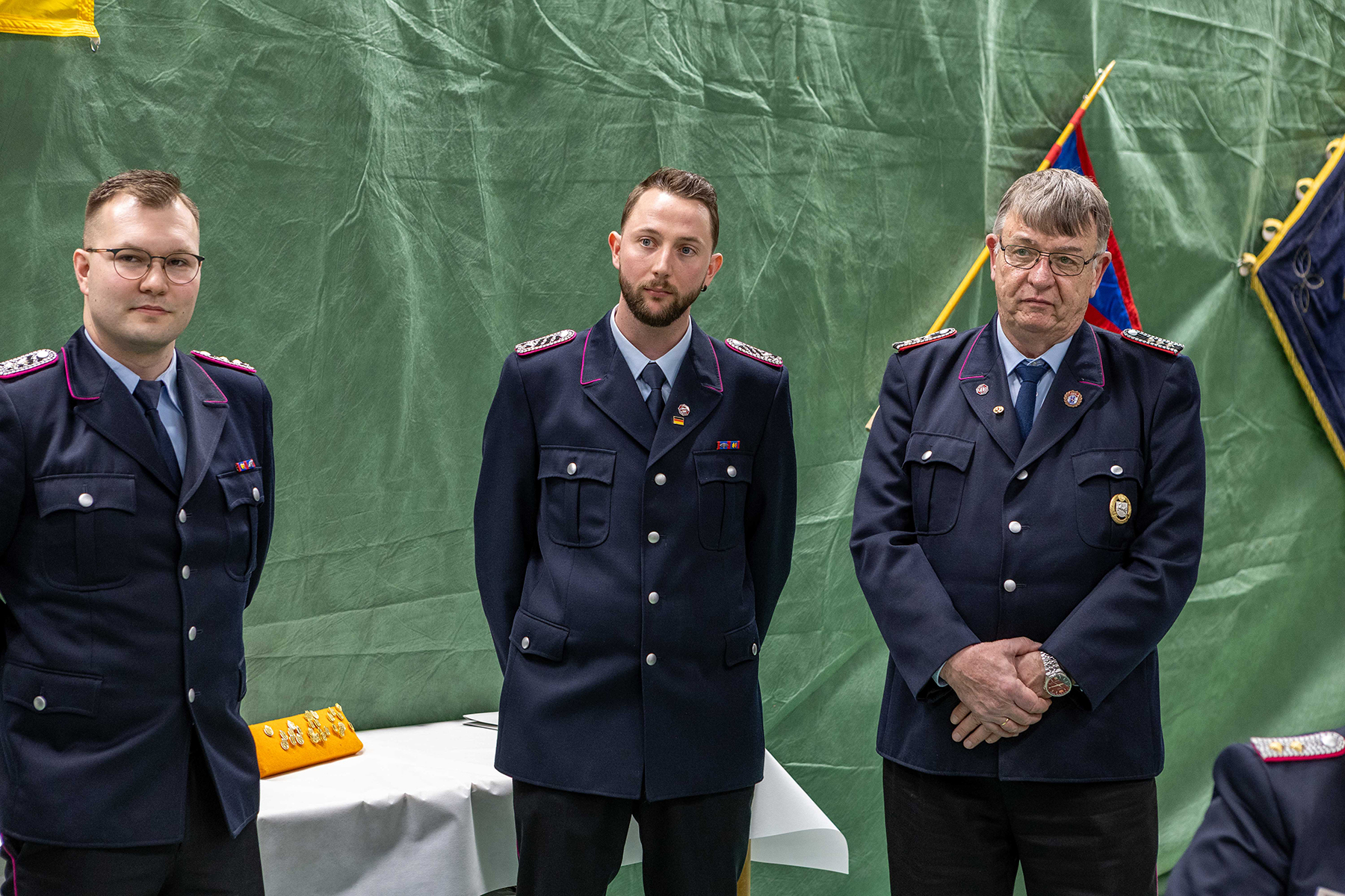 Neue Dienstgrade erhielten: Jens Schmidt (Feuerwehrmann), Fabian Sonneborn (Feuerwehrmann), Fenja Steinberg (Feuerwehrfrau), Lukas Mönkemeier (Oberfeuerwehrmann), Nils-Thorben Schrader (Oberfeuerwehrmann), Florian Hanne (Oberfeuerwehrmann), Sven Wimmer (Hauptfeuerwehrmann), Jonas Jungnickel (Hauptfeuerwehrmann), Jens Weisner (Erster Hauptfeuerwehrmann), Lea-Sophie Iser (Löschmeister) und Nick Ledderbohm (Brandmeister).