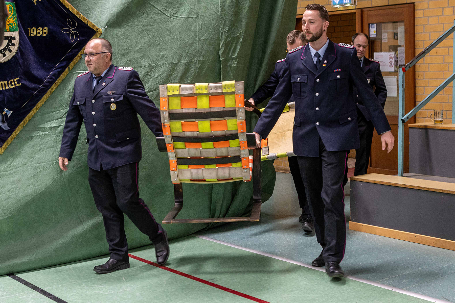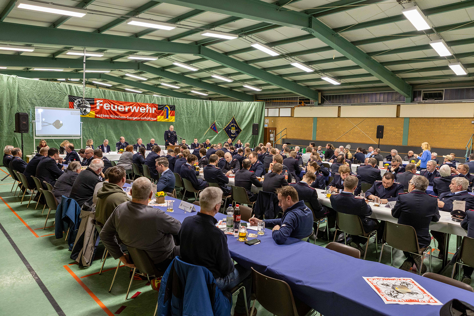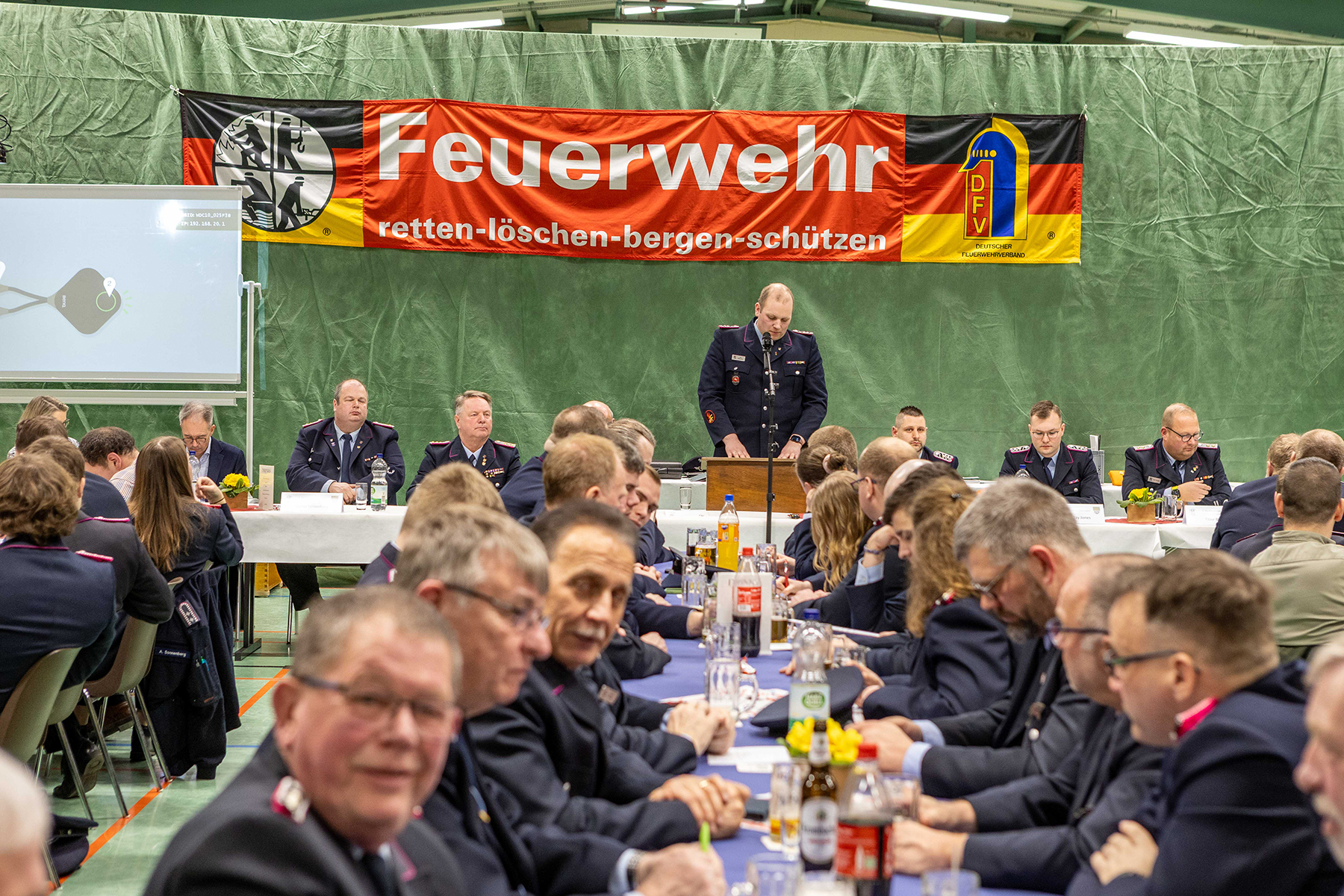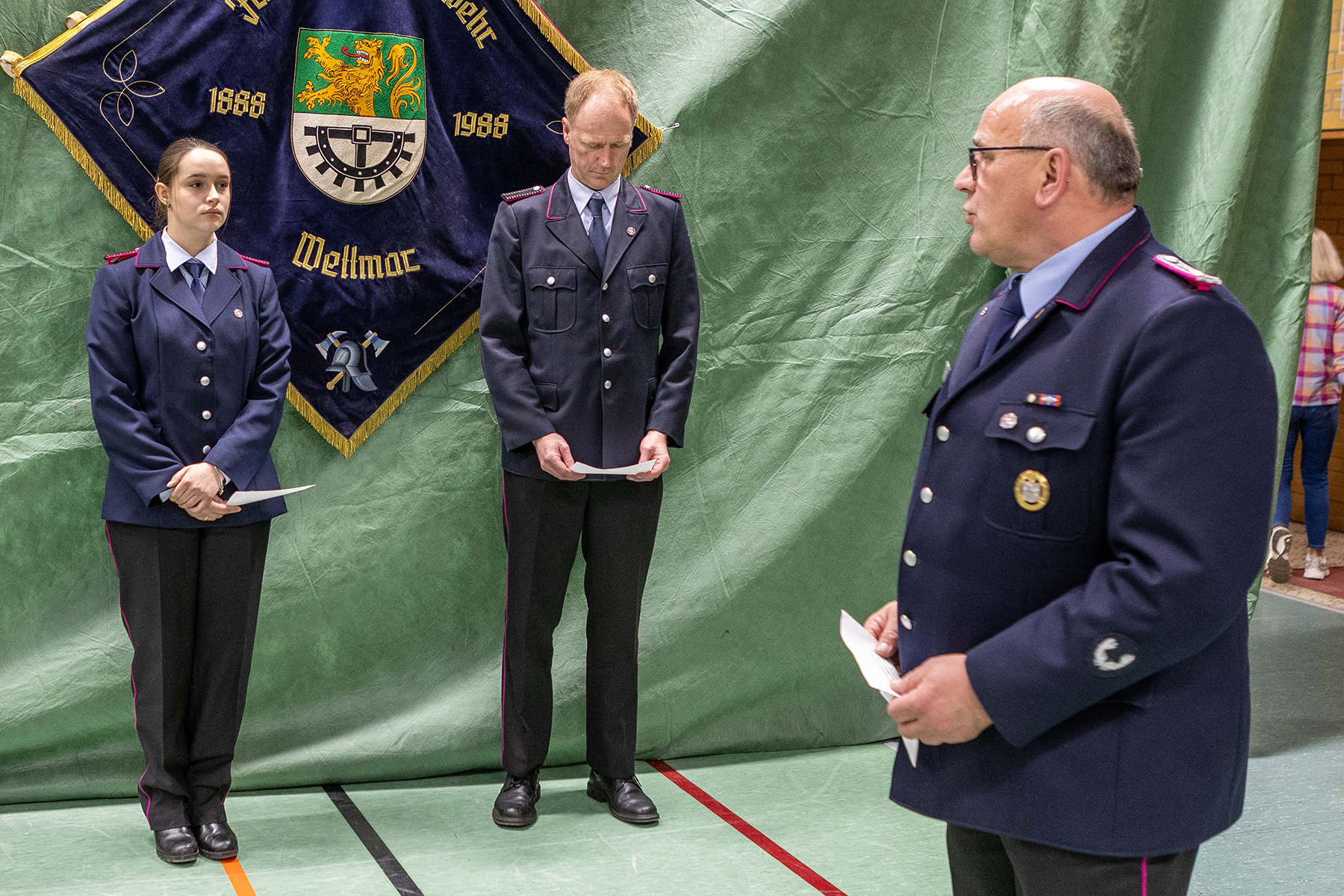 Neue Dienstgrade erhielten: Jens Schmidt (Feuerwehrmann), Fabian Sonneborn (Feuerwehrmann), Fenja Steinberg (Feuerwehrfrau), Lukas Mönkemeier (Oberfeuerwehrmann), Nils-Thorben Schrader (Oberfeuerwehrmann), Florian Hanne (Oberfeuerwehrmann), Sven Wimmer (Hauptfeuerwehrmann), Jonas Jungnickel (Hauptfeuerwehrmann), Jens Weisner (Erster Hauptfeuerwehrmann), Lea-Sophie Iser (Löschmeister) und Nick Ledderbohm (Brandmeister).
