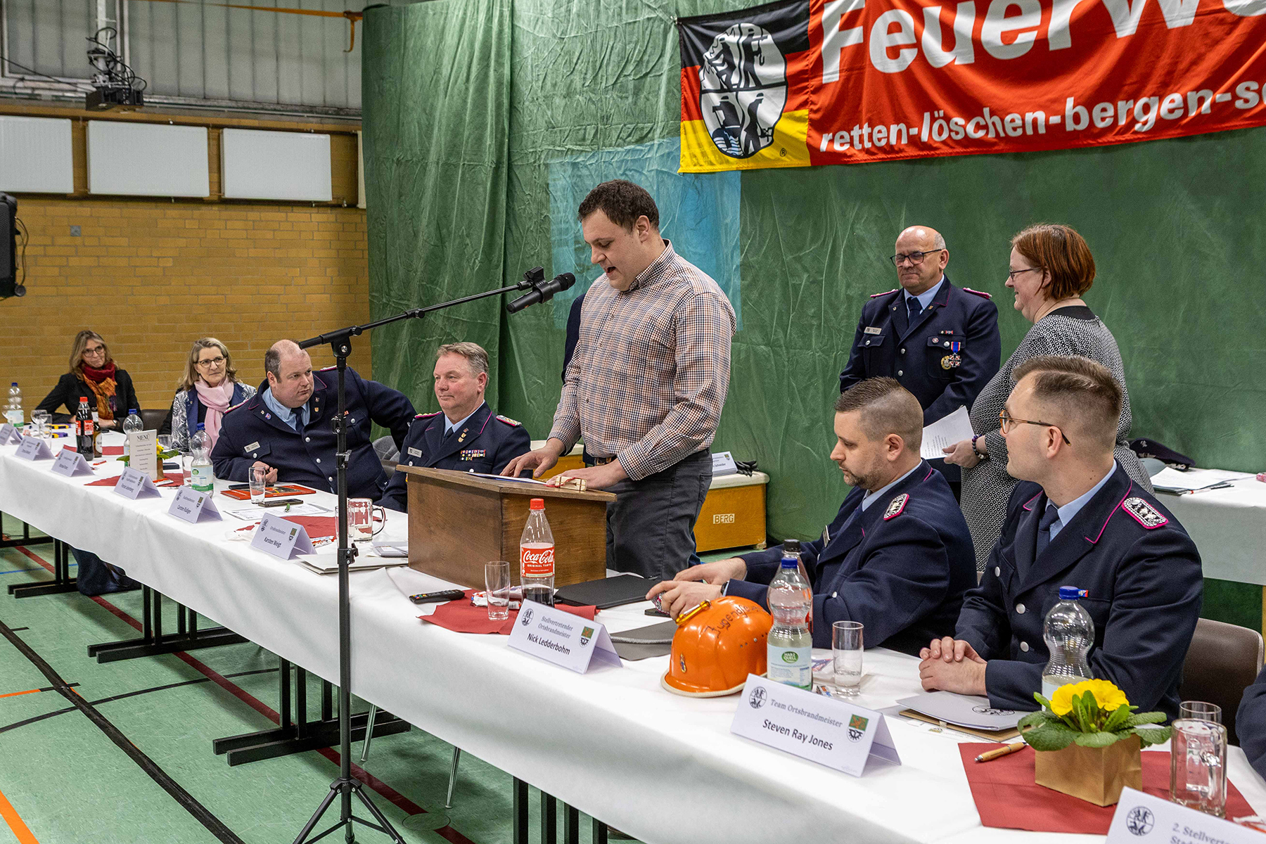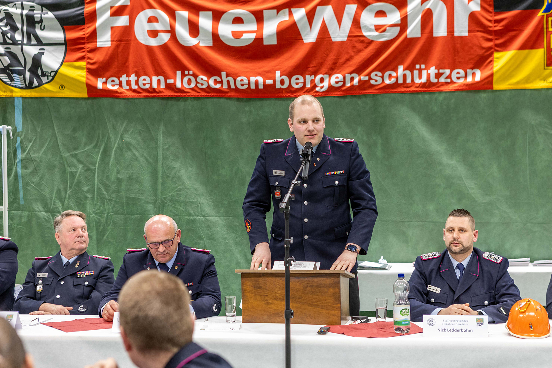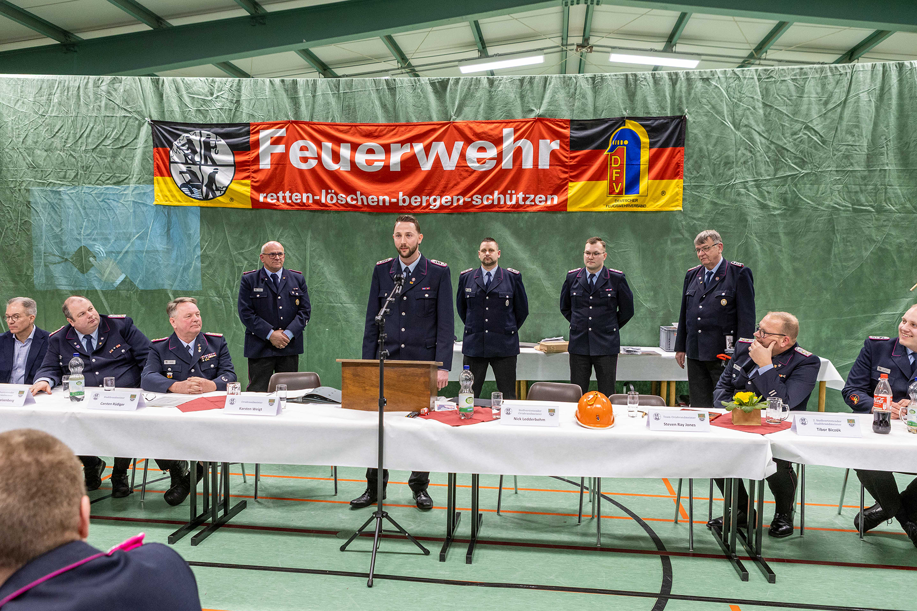 Bei den Neuwahlen wurde Nick Ledderbohm zum neuen Ortsbrandmeister gewählt. Der bisherige stellvertretende Ortsbrandmeister übernimmt den Staffelstab von Karsten Weigt. Steven Ray Jones, Gruppenführer der 1. Löschgruppe, wurde zum stellvertretenden Ortsbrandmeister gewählt.