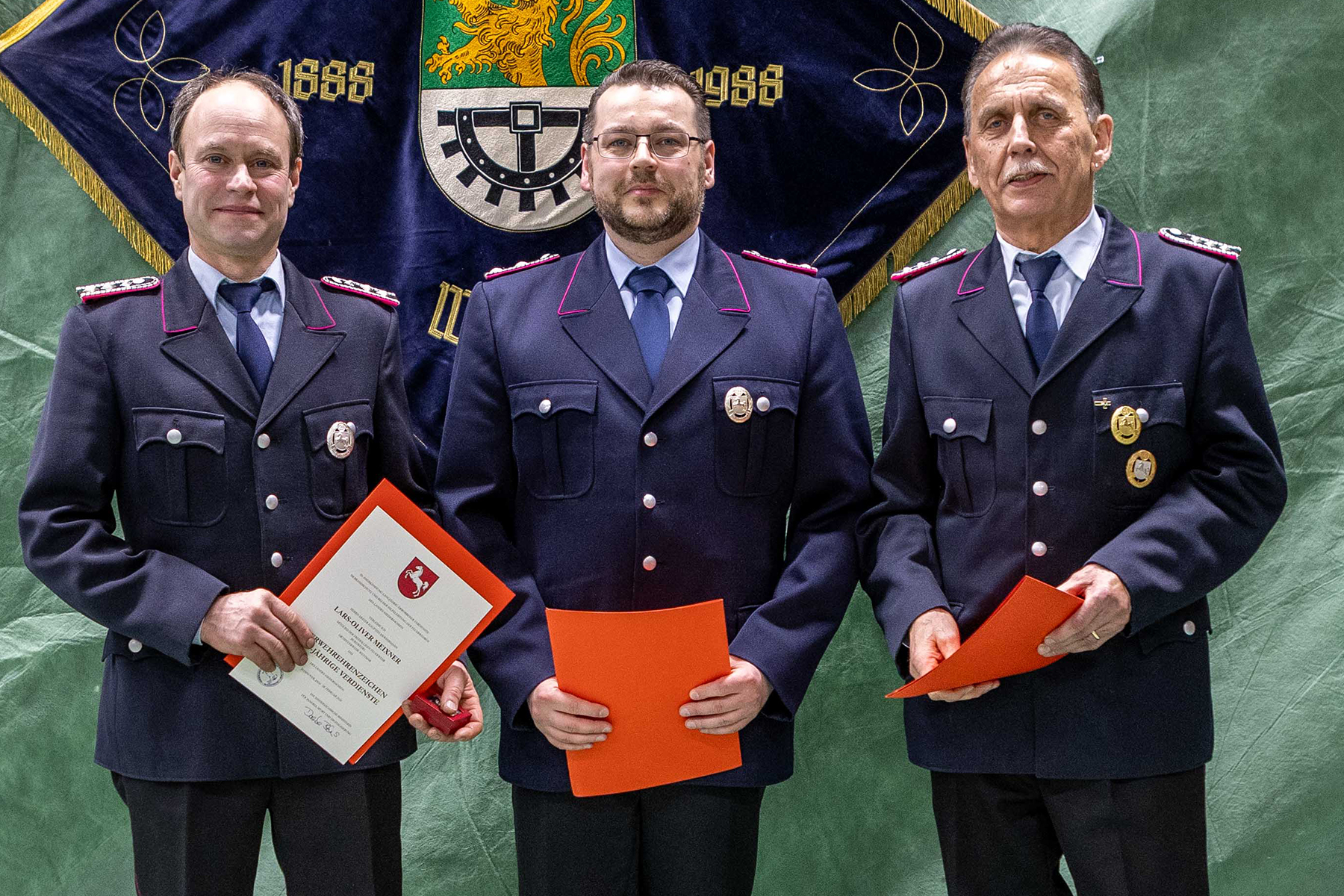 Geehrt wurden mit dem Feuerwehrehrenzeichen des Landes Niedersachsen: Bernd Thiemann (50 Jahre), Jens Weisner (25 Jahre) und Lars-Oliver Meixner (25 Jahre).