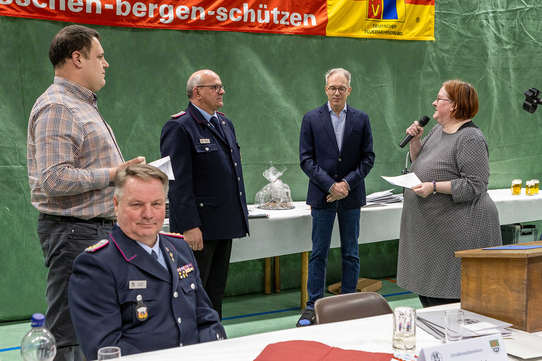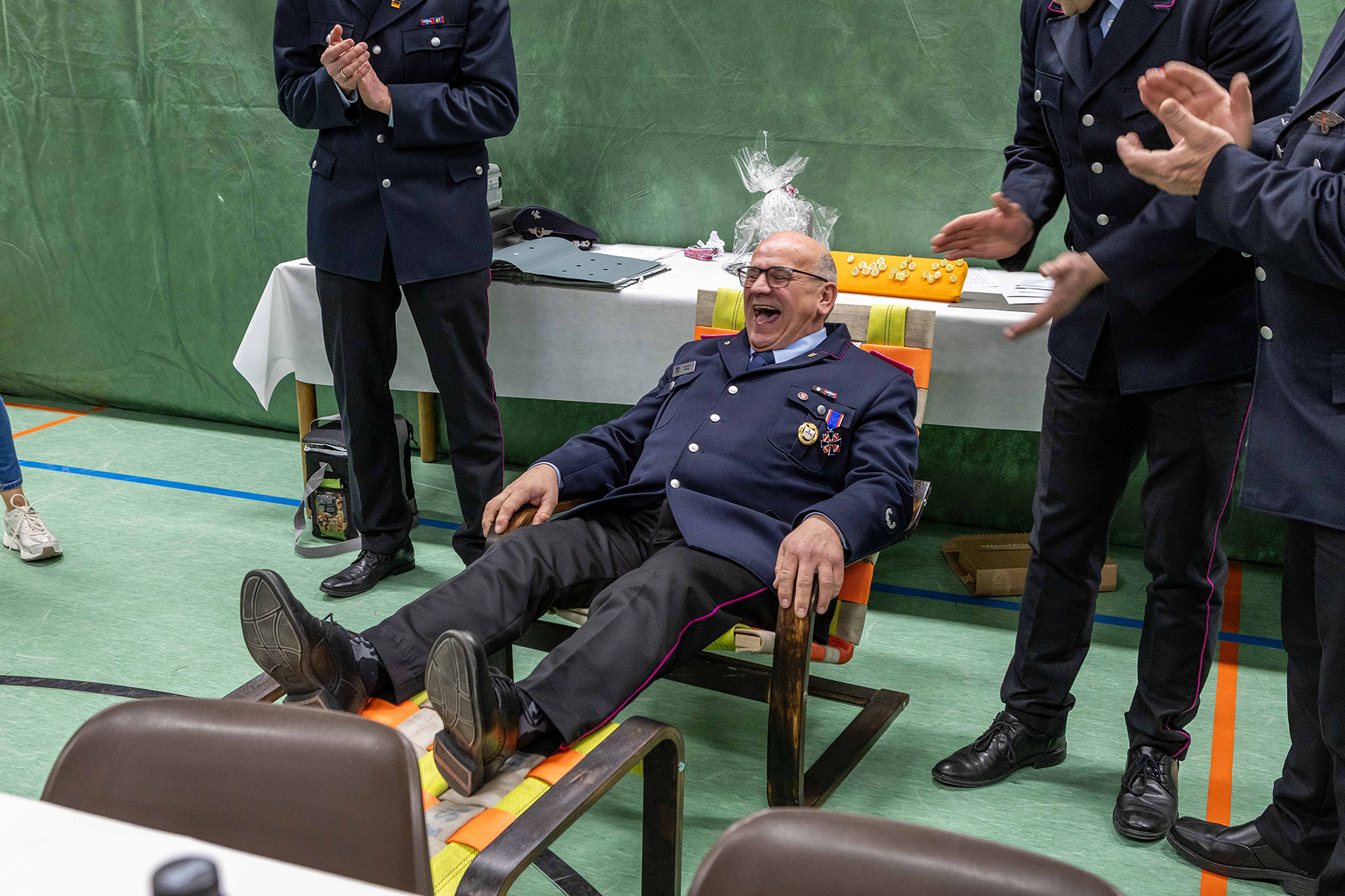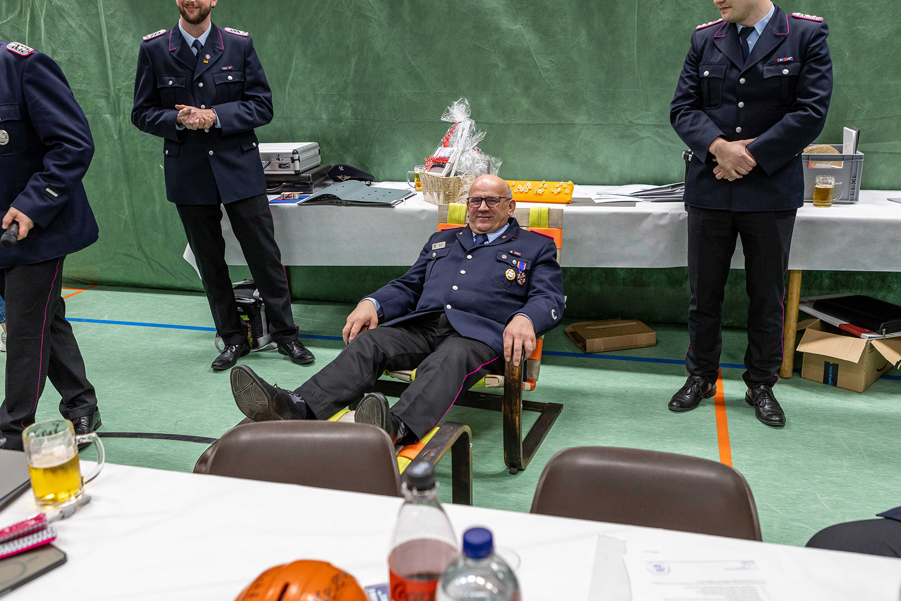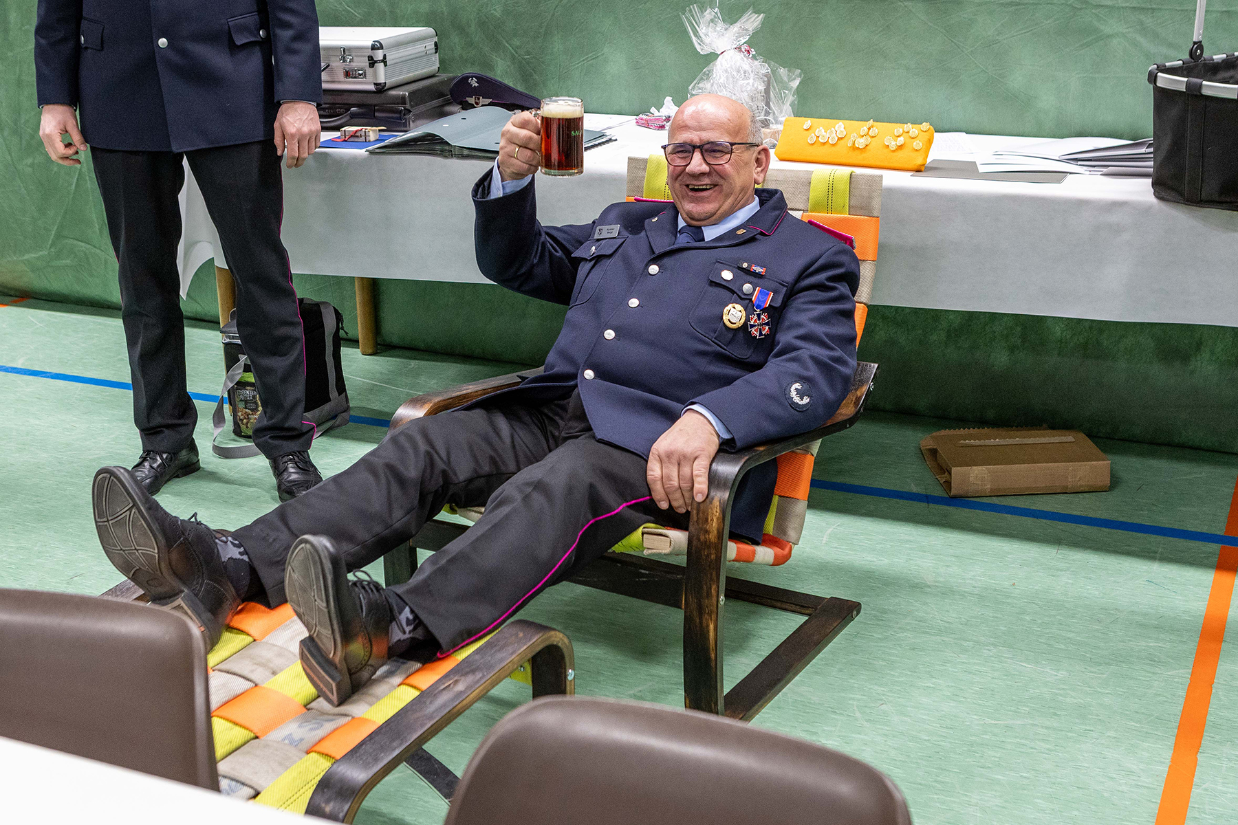 Zum Schluss dankte er seiner Frau und seinen Kindern: „Danke für die Unterstützung in all den Jahren als Feuerwehr-Chef und als Brummelkopf natürlich – du kennst mich ja.“