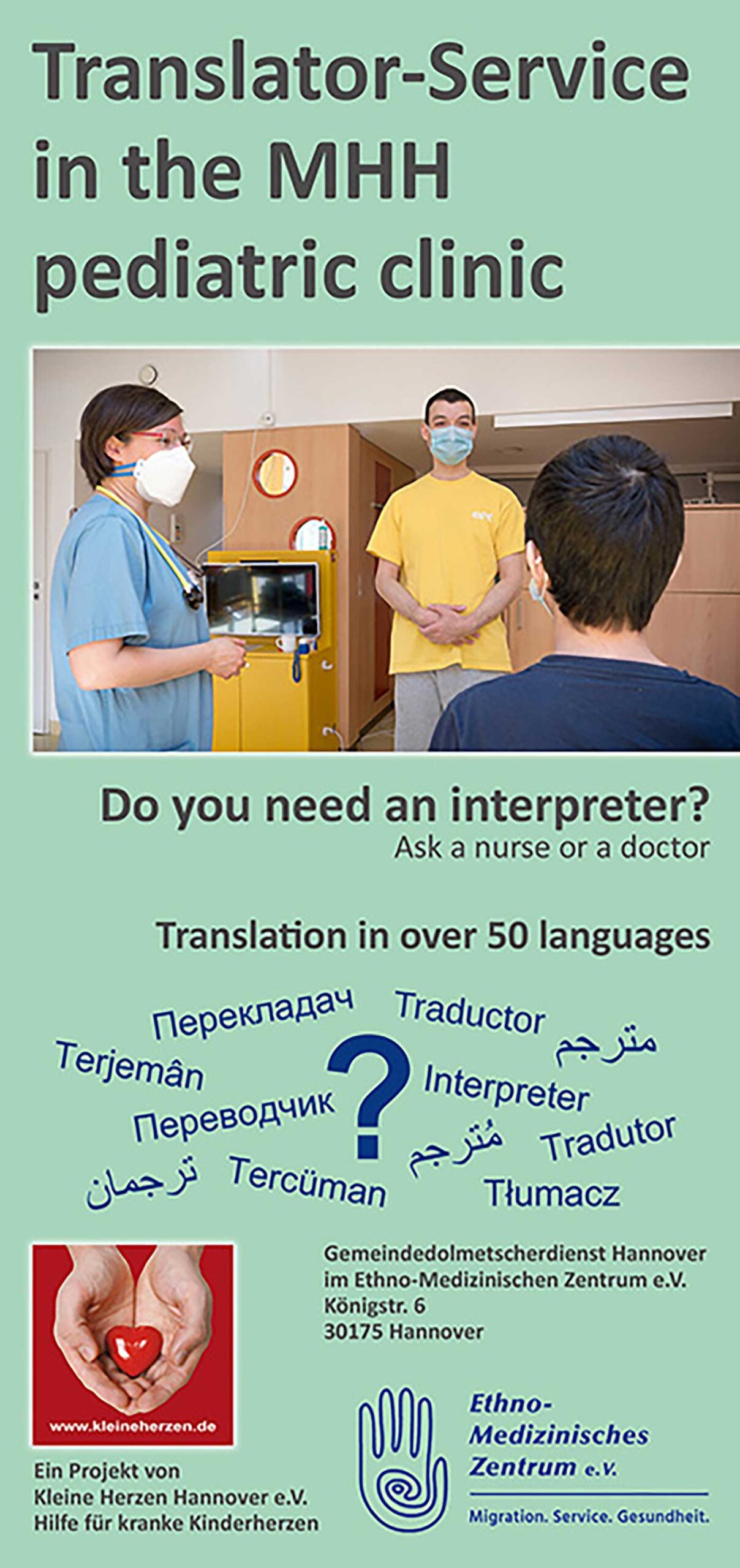 Der Verein Kleine Herzen Hannover blickt auf 15 Jahre Dolmetscherdienst in der Kinderkardiologie der Medizinischen Hochschule Hannover zurück. Das gemeinsam mit dem Ethno Medizinischen Zentrum initiierte Projekt unterstützt Familien mit sprachlichen Hürden in einer besonders belastenden Lebenssituation und gilt inzwischen bundesweit als Vorbild.