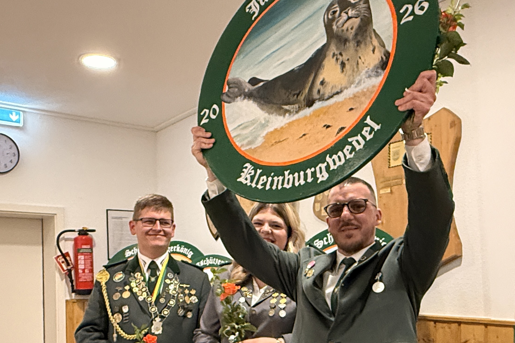 Bevor die Preisträger und Majestäten bekannt gegeben wurden, standen zunächst drei Helfer im Mittelpunkt, die sich seit Jahren um das leibliche Wohl kümmern. Walter Sonnefeld, Jens Saupe und Sven Glasemann wurden für ihre langjährigen Eierbratkünste mit einem kleinen Präsent ausgezeichnet. Nach diesem Dank wurde es offiziell: Ortsbürgermeister Lars Wöhler verkündete die aktuelle Kinderkönigin und die Platzierten. Anschließend übernahm der 1. Vorsitzende Nick Bienio und führte durch die Proklamation der neuen Majestäten.